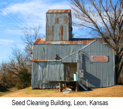 The next print is of a weathered looking Seed Cleaning building found in Leon, Kansas on my recent Butler County drive. A pen and ink illustration of the old structure was scanned and brought into Photoshop where some of the sky and ground texture was added and photograined to be a dot pattern. The image was again printed on a transparency and the solar plate exposed and developed.