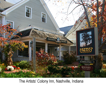 Our major destination and hope for fall color was the small, art colony town of Nashville (not The Nashville, this one is in central Indiana). Several acquaintances’ recommendations and mentions in Midwest Living convinced us to give the area a try. We invited my sister and her husband to meet us and then travel together down to the Bourbon country of Kentucky. Nashville is located on the edge of Brown County State Park, 50 miles south of Indianapolis between Columbus and Bloomington.