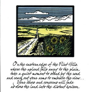 We have developed a selection of Notecards and frameable Mini-posters that reflect the design and thoughts found in the book, Wander the Kansas Flint Hills in Words and Images.  Now you can share these uniquely Kansas thoughts and images with those who mean so much to you. The Notecards are priced at $3.50 ea.  There is also an assortment pack with 8 of the most popular designs for $24.00. The Mini-posters are printed on our Epson printer utilizing archival quality inks and are individually signed.  They are 8-1/2"x 11" for ease of framing with inexpensive certificate frames.