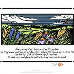 We have developed a selection of Notecards and frameable Mini-posters that reflect the design and thoughts found in the book, Wander the Kansas Flint Hills in Words and Images. Now you can share these uniquely Kansas thoughts and images with those who mean so much to you. The Notecards are priced at $3.50 ea. There is also an assortment pack with 8 of the most popular designs for $24.00. The Mini-posters are printed on our Epson printer utilizing archival quality inks and are individually signed. They are 8-1/2"x 11" for ease of framing with inexpensive certificate frames.