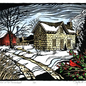The prints below are original, photo-polymer etchings and relief prints, copper plate etchings and linocuts (linoleum block prints) produced entirely in my own printmaking studio from scenes and locations found on our backroads travel. Each print is inked and hand-printed, one at a time, on my Takach Etching Press in a strictly limited edition before the plate is retired. The colored prints are produced as black and white prints, either intaglio or relief prints, and are then individually watercolored to add accents and interest. All prints will be sold matted, not framed, with an off-white, acid-free mat and acid-free foamcore backing. Each print comes with a Certificate of Authenticity, assuring you of an original, limited edition print. Click here for an example of the matting and certificate.